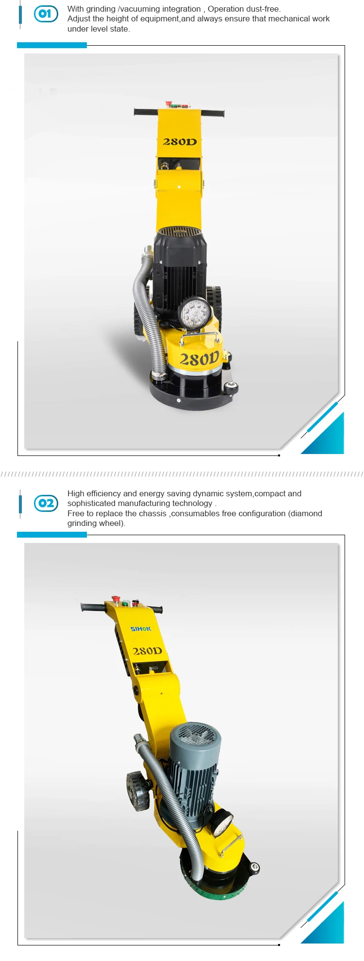 This machine is ideal for grinding concrete floors, polishing epoxy surfaces, preparing floors for coatings, restoring old concrete, and performing maintenance on commercial flooring.