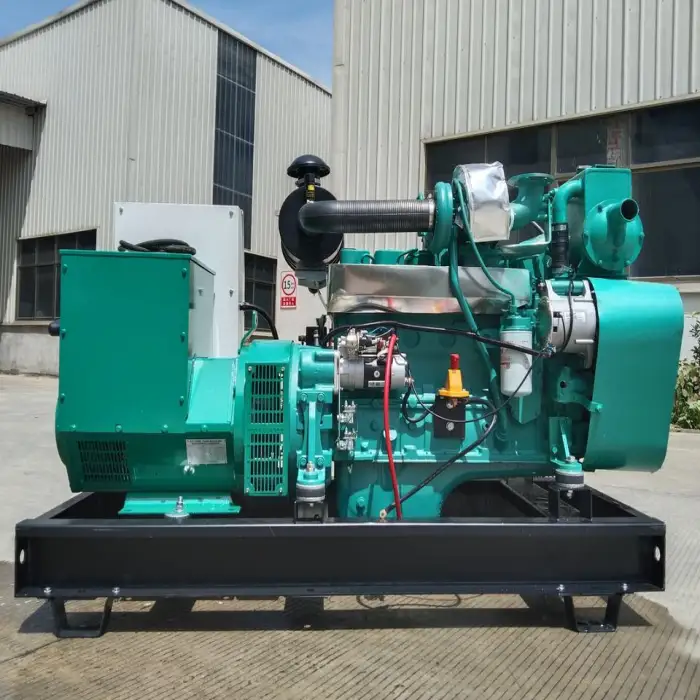 The generator features a water cooling system, equipped with a heat exchanger and a seawater pump for effective temperature management.