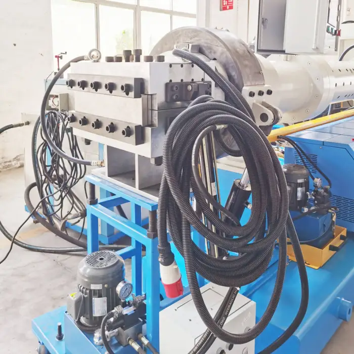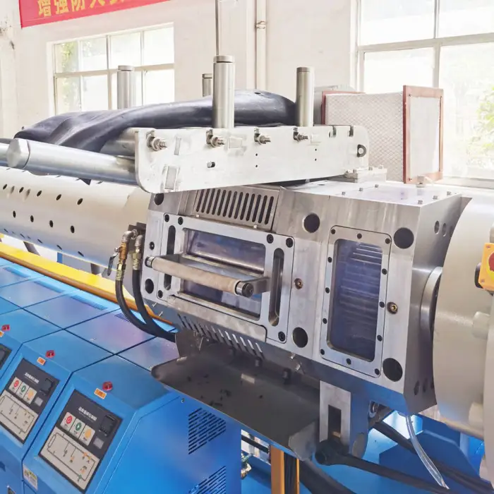 The extruder is equipped with an automatic feeding machine for enhanced efficiency in the production process.