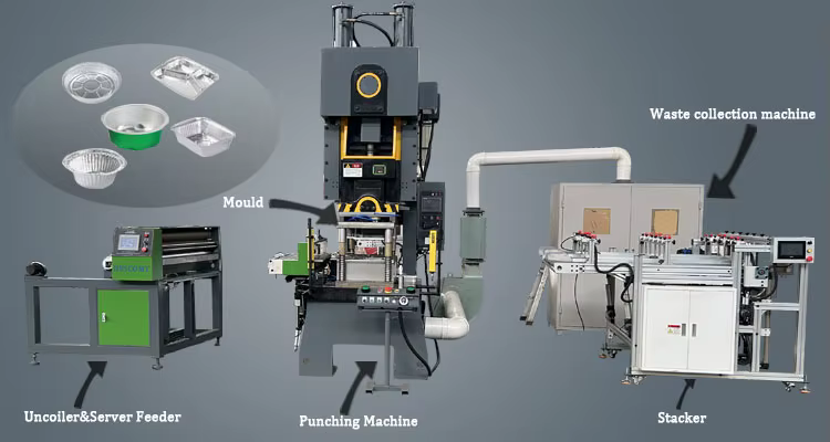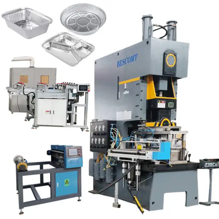The machine can produce up to 120 pieces per minute, making it highly efficient for aluminum foil container production.