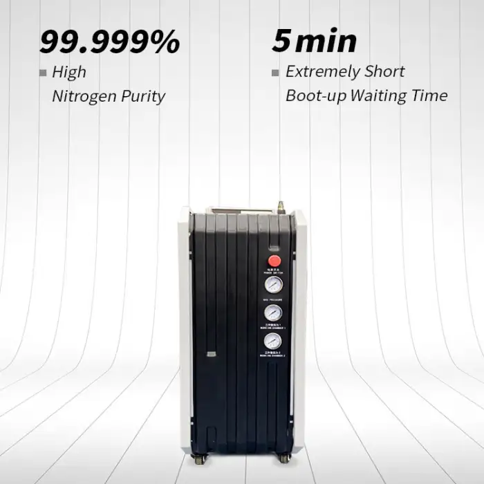 The generator produces nitrogen gas with a purity level of 99.999%, ensuring high-quality welding performance.