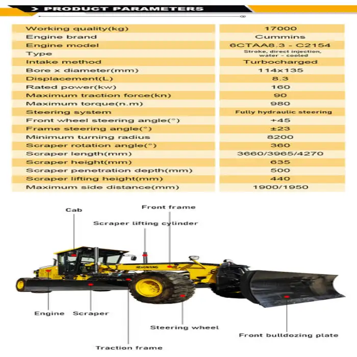This motor grader is suitable for road construction and maintenance, land grading for landscaping, creating and maintaining dirt roads, preparing surfaces for paving, and snow removal in winter conditions.