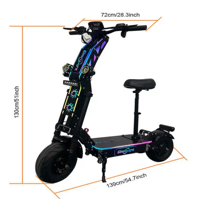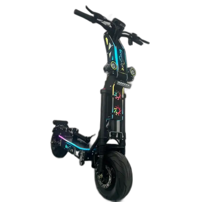 The scooter features a powerful dual motor with a total output of 10,000 watts.
