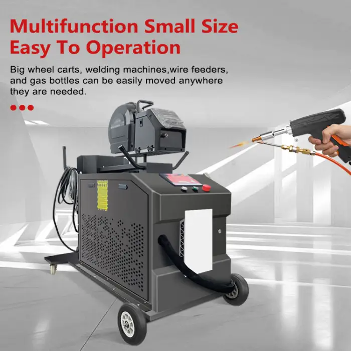 The handheld laser welder uses a fiber laser for effective welding and cutting.