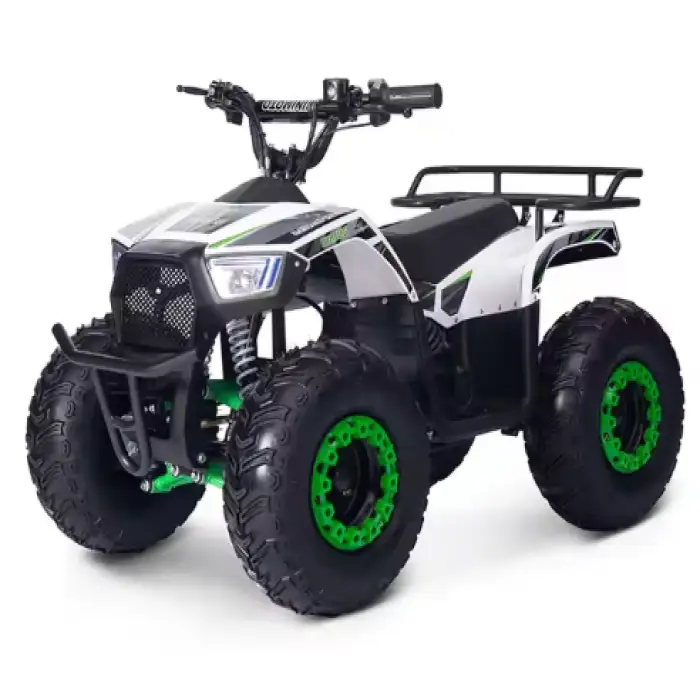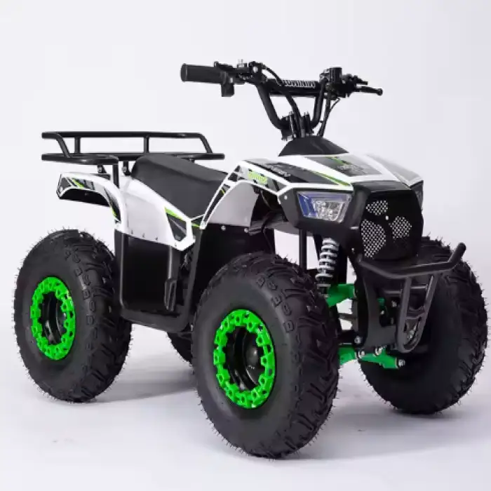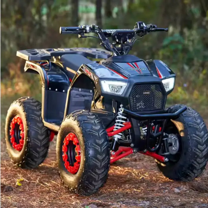 The quad bike includes a durable design, front and rear disc brakes, and a differential lock for better traction, ensuring a safe riding experience.