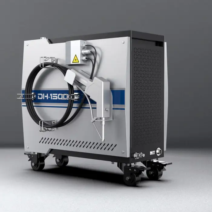 This machine is designed for metal welding, cutting, and cleaning, specifically for materials like aluminum and stainless steel.