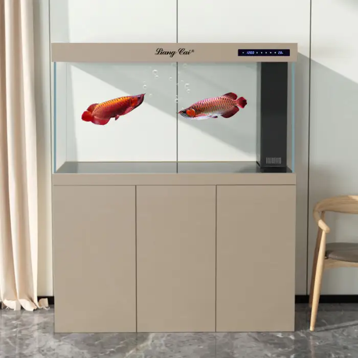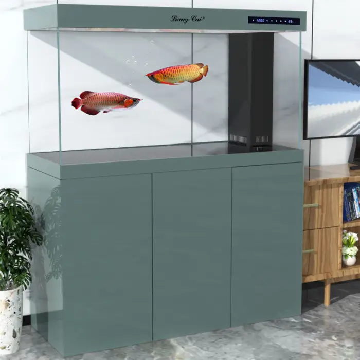 The fish tank is made from high-quality glass, ensuring durability and clarity.