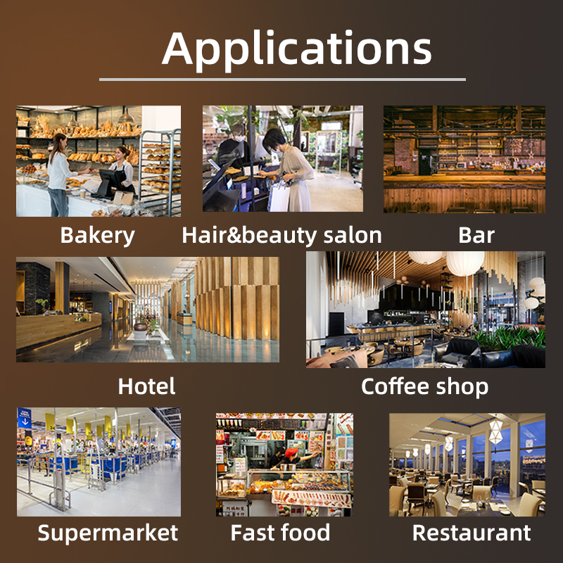 This POS system is suitable for various applications including restaurants, hotels, fast-food outlets, coffee shops, and bakeries.