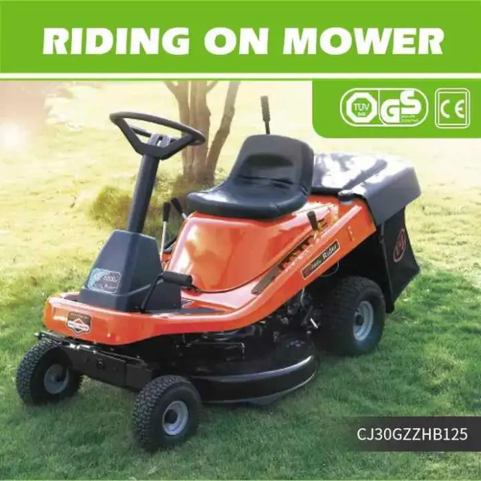 The cutting width is 76 cm, suitable for covering large areas more quickly than a walk-behind mower.