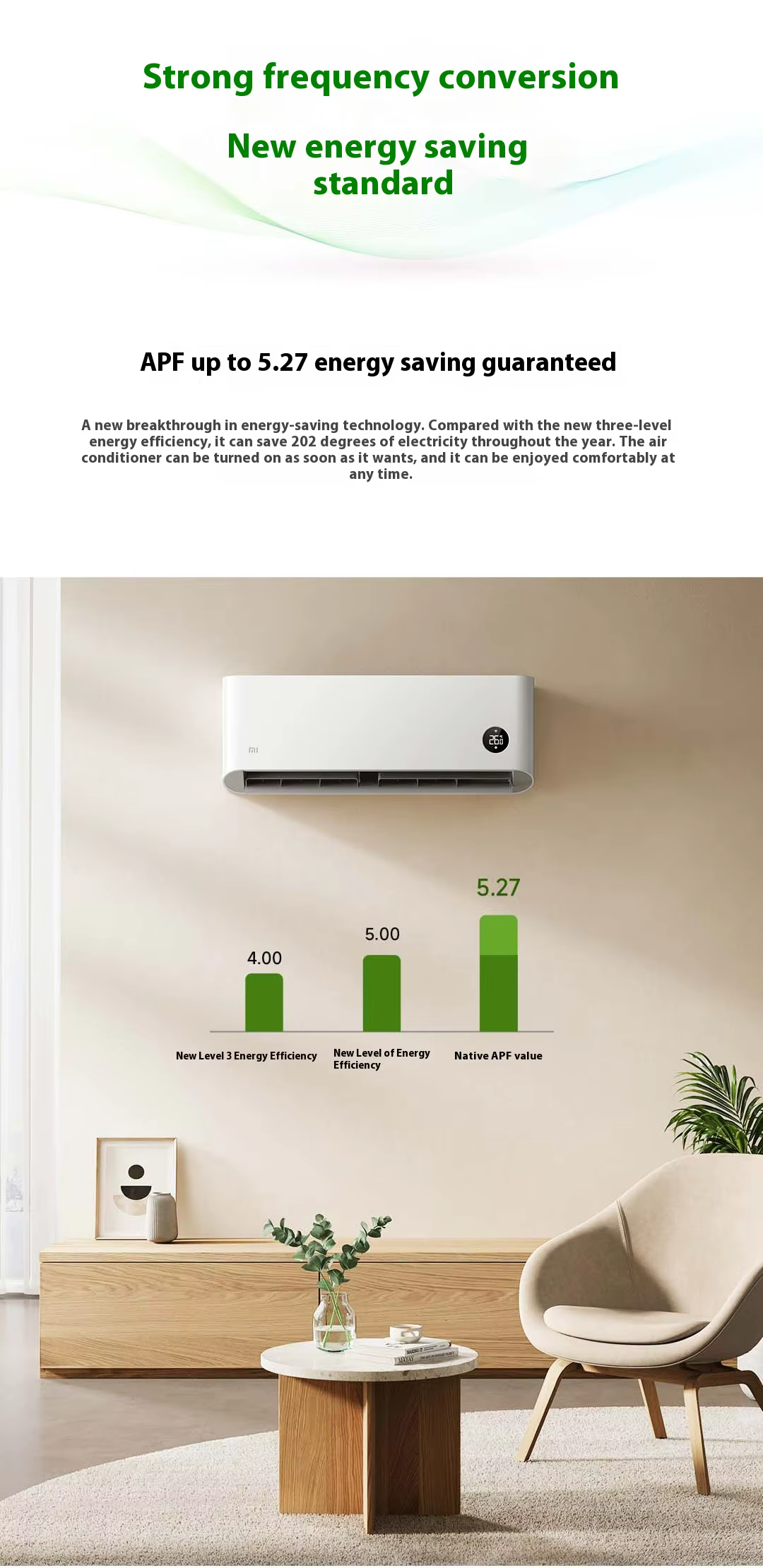 The Xiaomi Mijia air conditioner has an energy efficiency rating of Class A.