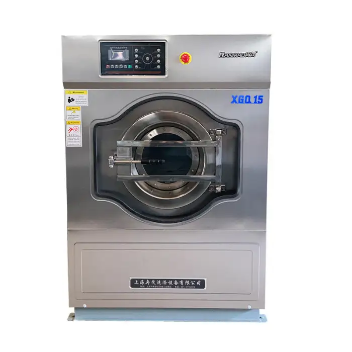 The 15KG Washing Equipment Dry Cleaner has a capacity of 15kg, which is ideal for handling large laundry loads.