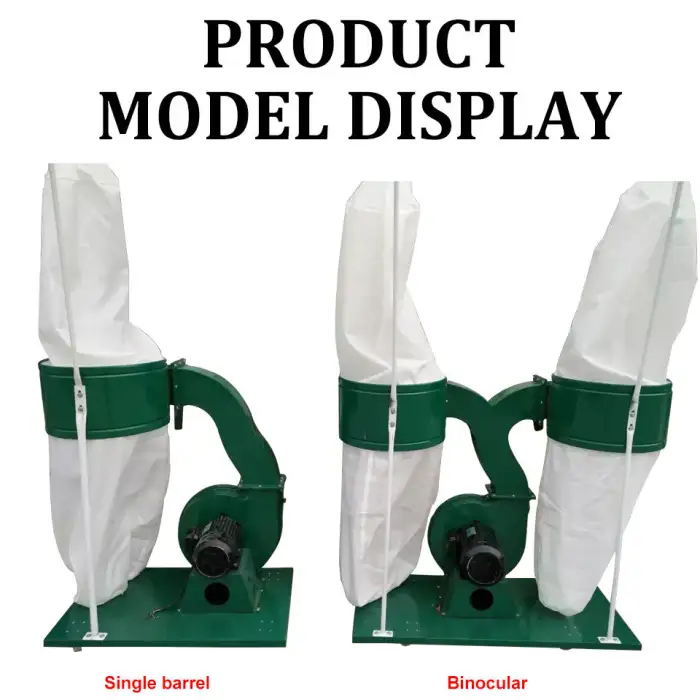 The dust collector can be equipped with either a single or double bag for enhanced dust collection.