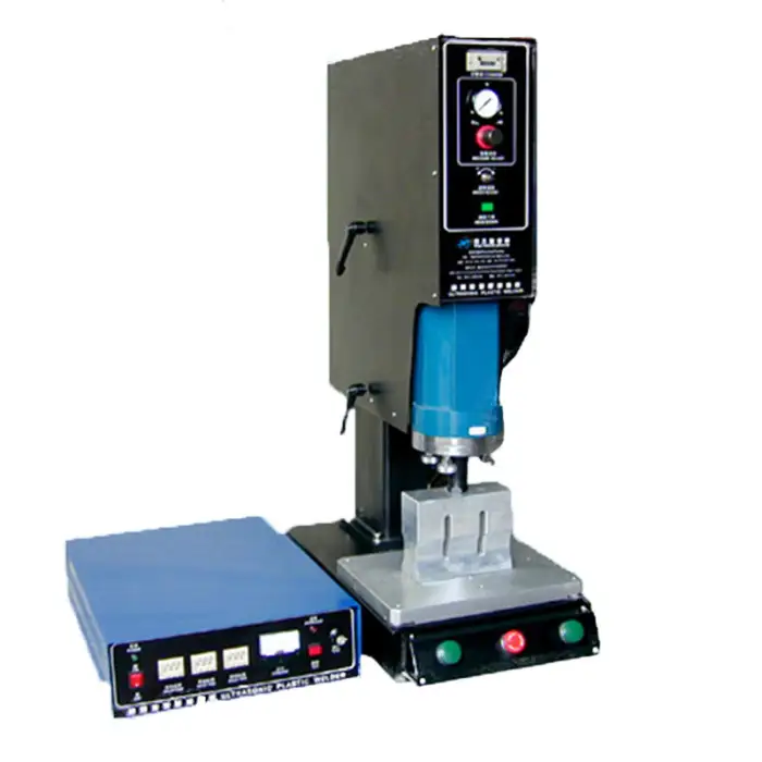 This ultrasonic welder operates at frequencies of 28 kHz, 20 kHz, 15 kHz, and 35 kHz.