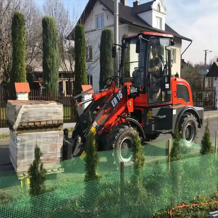 The rated load capacity of the ER16 mini loader is 1600 kg.