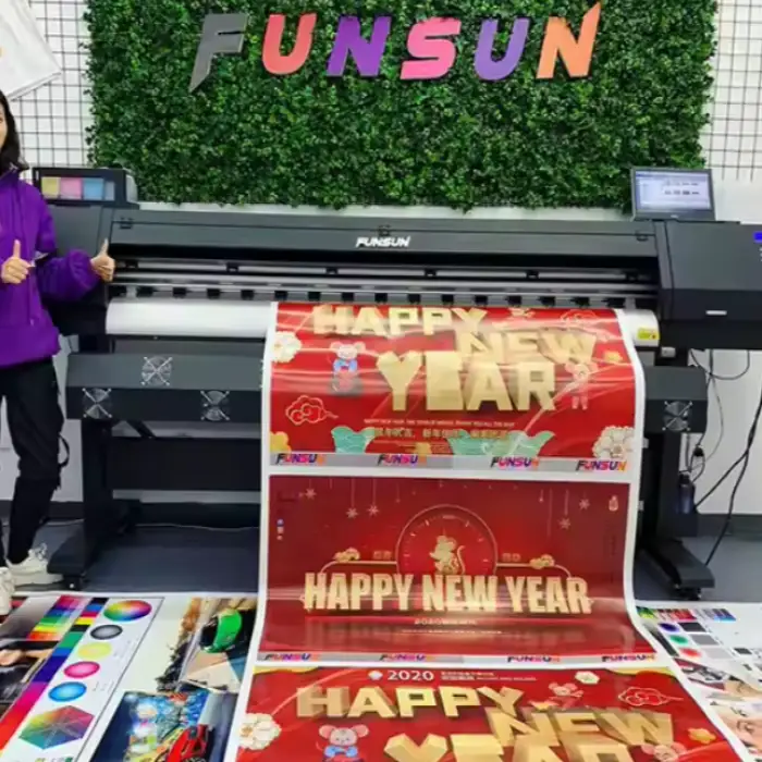 The Funsun Eco Solvent Printer can print up to 1.8 meters in width, making it ideal for large-format prints.