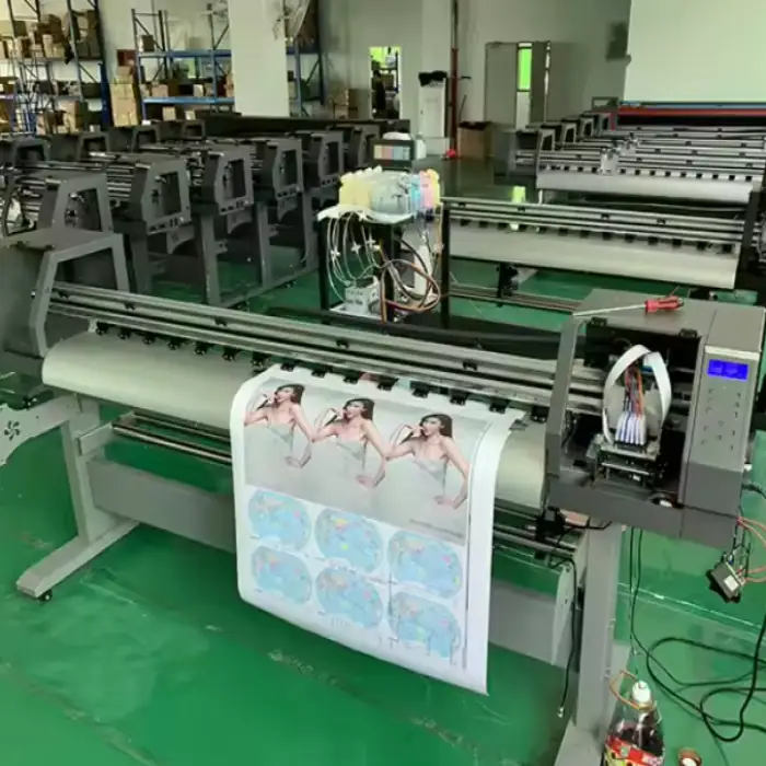 The printer uses eco solvent ink, which is environmentally friendly and provides high-quality prints.