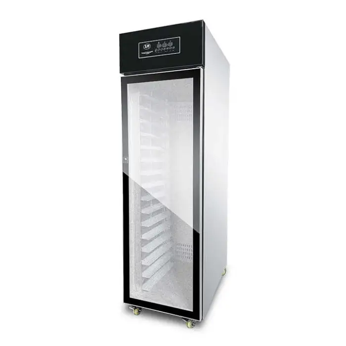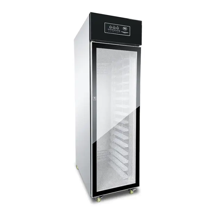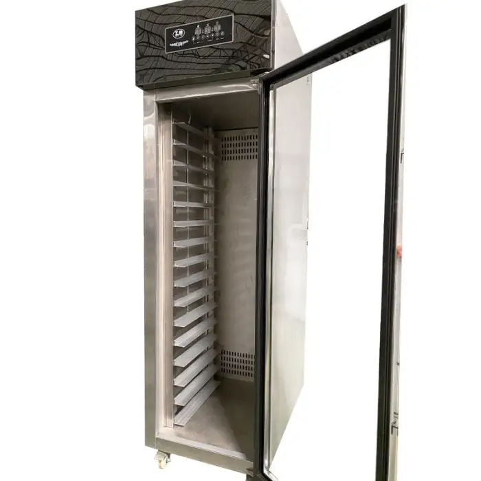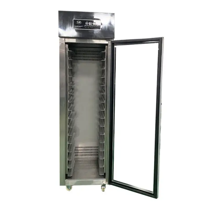 The proofing box is constructed from durable stainless steel, ensuring longevity and ease of cleaning.