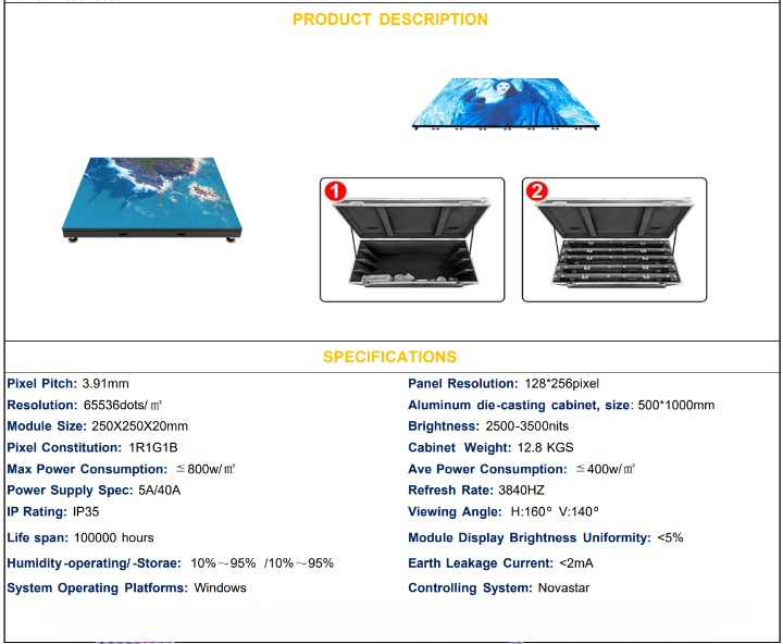 The LED dance floor has a brightness of up to 3500 nits, ensuring visibility even in bright lighting conditions.