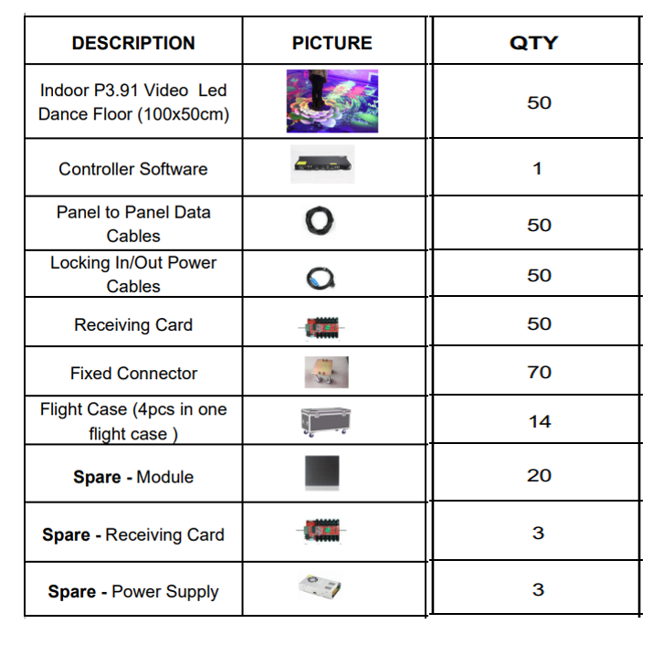 The pixel pitch of the dance floor is 3.91mm, which provides stunning clarity and detail in visuals.