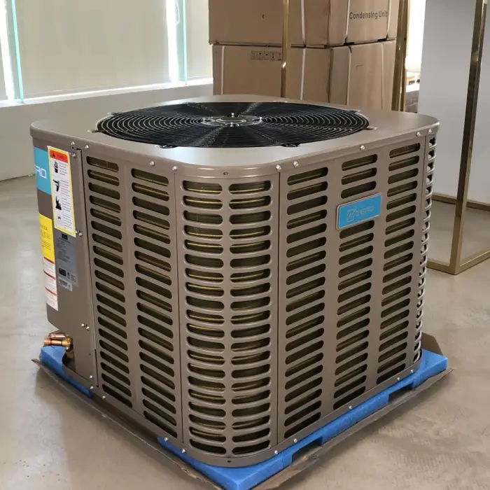 The unit features a high SEER rating and variable frequency operation for optimal performance.