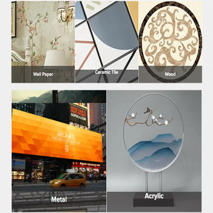 This printer is ideal for printing 3D wall papers, labels, stickers, custom textiles, clothing designs, billboards, posters, cards, and promotional materials.