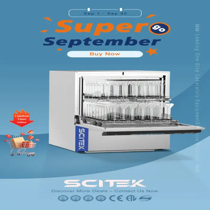 The SCITEK 185L Automatic Laboratory Glassware Washer and Dryer has a capacity of 185 liters, allowing you to clean large batches of glassware efficiently.
