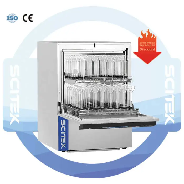This model features two layers of cleaning baskets, which helps in organizing and efficiently cleaning multiple glassware items.
