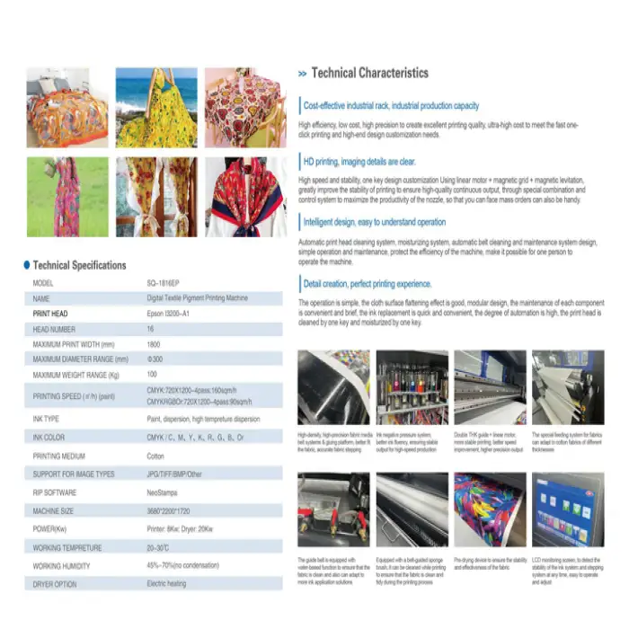 This machine is ideal for printing clothes, bed sheets, curtains, and outdoor advertising materials.