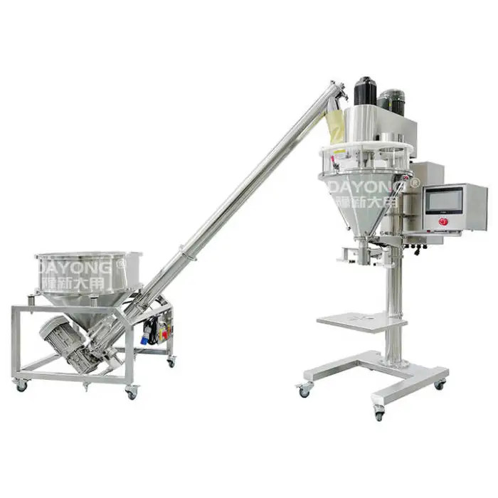 The dispenser machine can handle powders, liquids, and solids, making it versatile for various packaging needs.