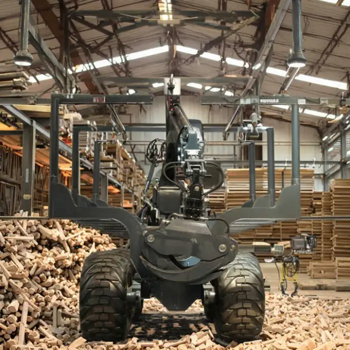 This loader is designed for tasks that involve lifting and moving heavy logs and materials, making it ideal for construction and timber handling.