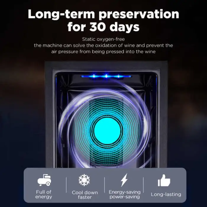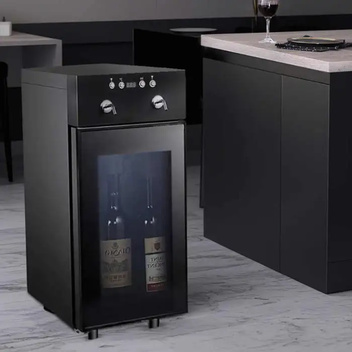 The wine dispenser maintains optimal temperature and uses compressor refrigeration to keep wine fresh.