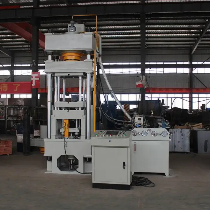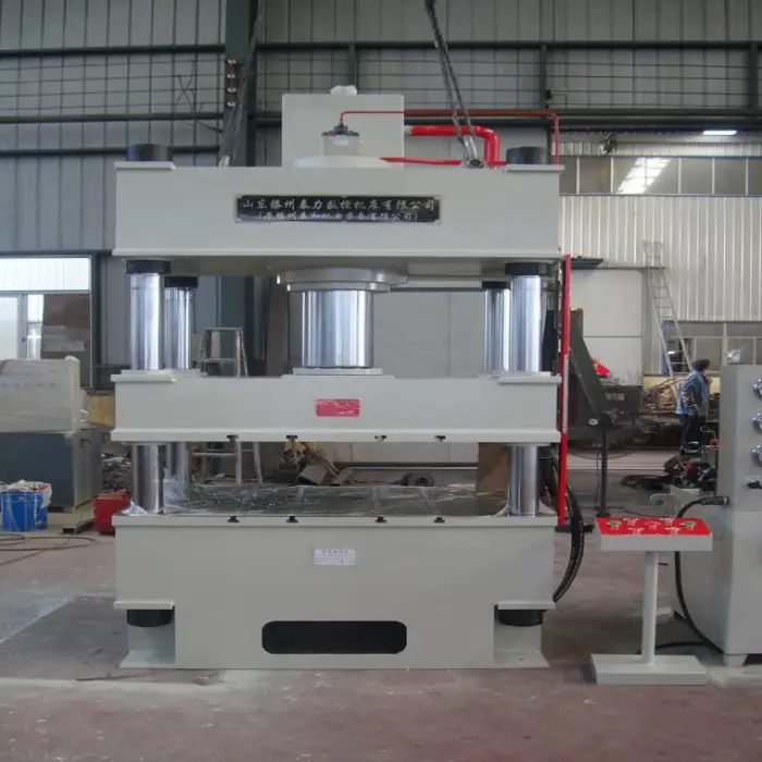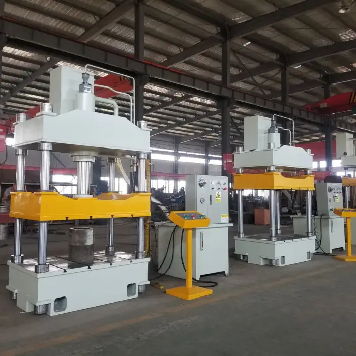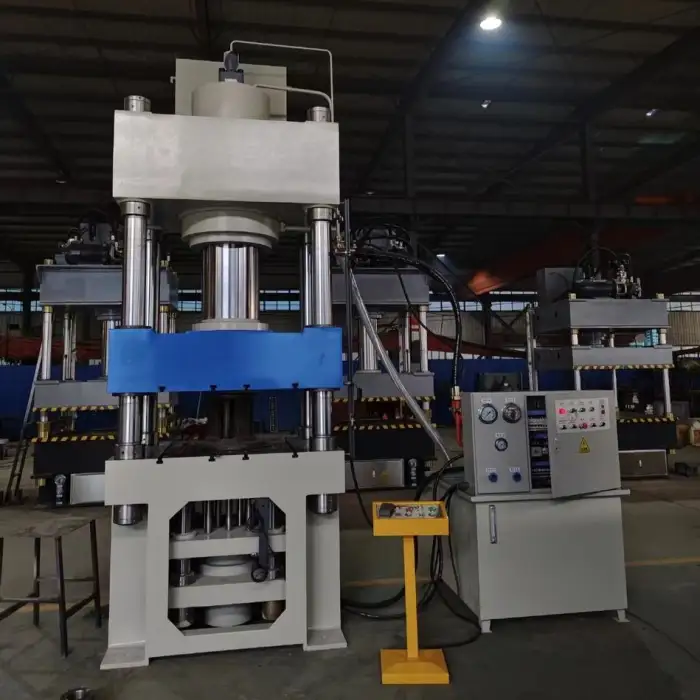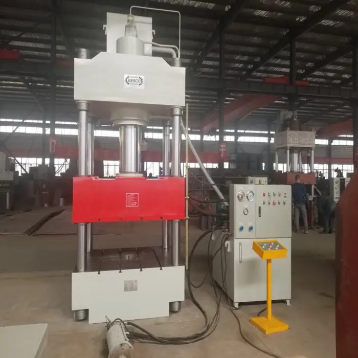 This machine is a four-column, three-beam hydraulic press.