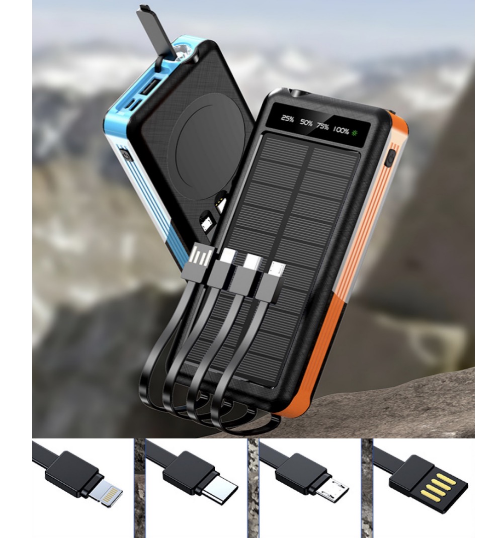 The 20000mAh solar power bank is compatible with a wide range of devices, including iPhones, Samsung smartphones, and other mobile devices that support USB charging.