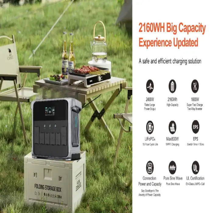 The power bank utilizes a LiFePO4 battery, known for its safety and stability, especially in outdoor applications.
