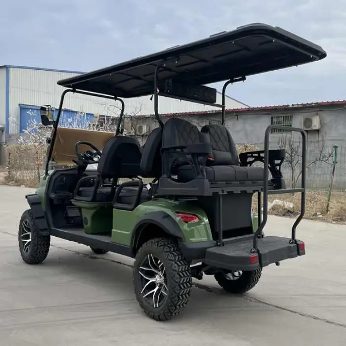 The 2025 Model Black Electric Golf Cart can comfortably seat up to 6 passengers.