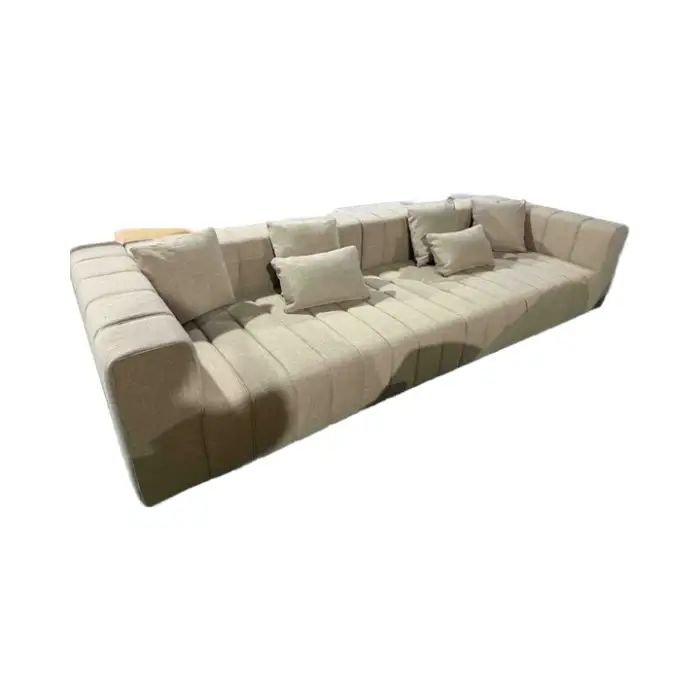 The sofa is offered in tailor-made fabric options with customizable colors and textures. You can choose from several upholstery categories (residential, stain-resistant, or commercial-grade). Sample swatches are available on request to confirm color and feel before order.