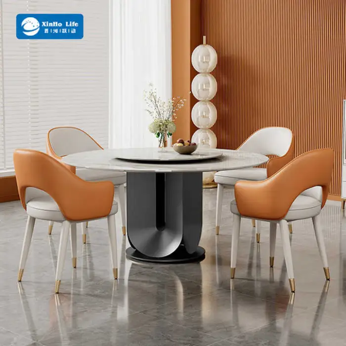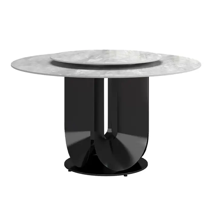 2025 Modern Luxury Ceramic Dining Table Set Round with Lazy Susan 4-6 Seaters Stainless Steel Leg Home Furniture