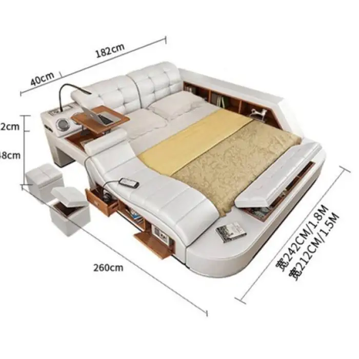 The bed is made of luxurious leather upholstery and a sturdy metal frame (Steel) along with plywood panels.