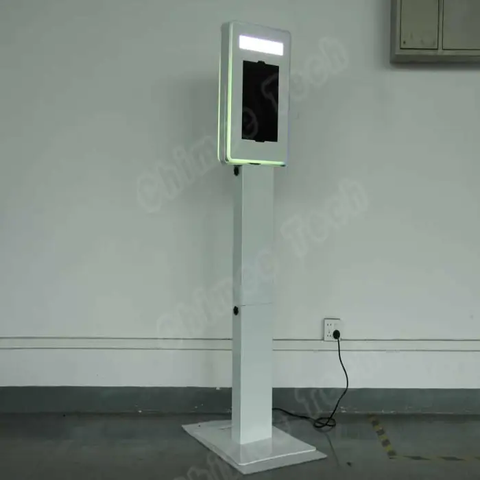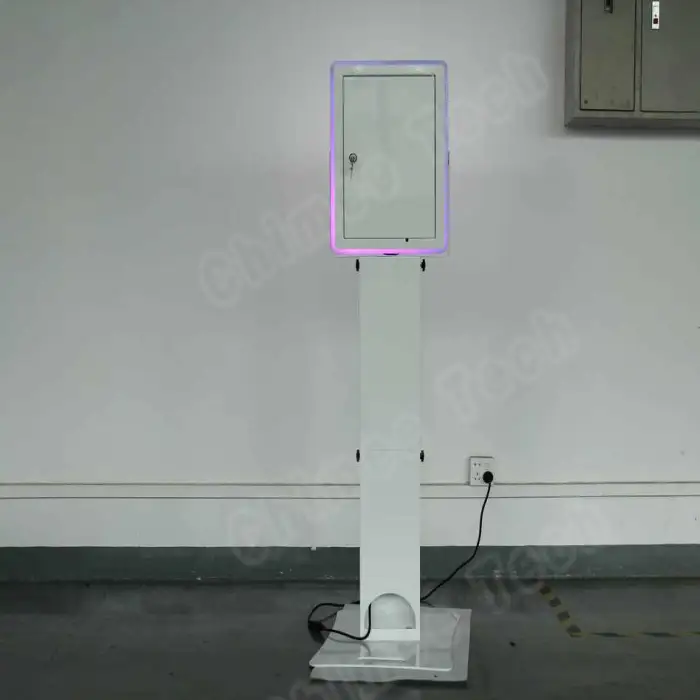 The 2025 Selfie Station is made from durable aluminum and iron materials, ensuring longevity and stability.
