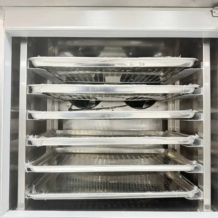 The blast chiller is intended for rapid freezing/preservation (blast chilling) to lock in quality. For long-term storage, transfer products after freezing to a dedicated freezer or cold storage unit designed for sustained low-temperature storage.