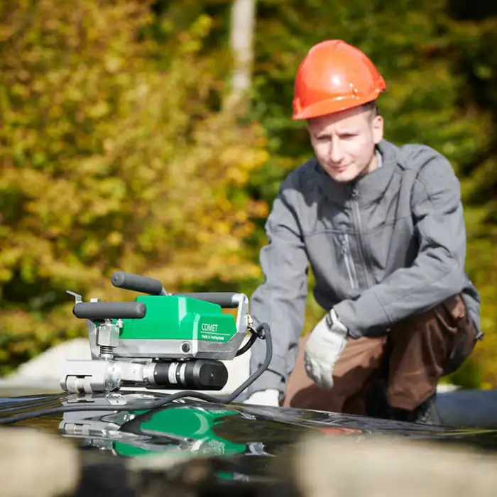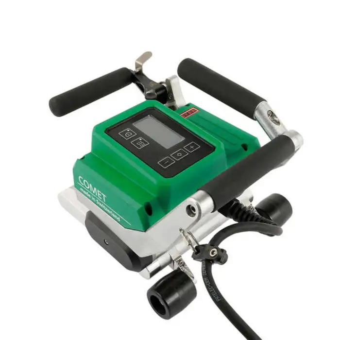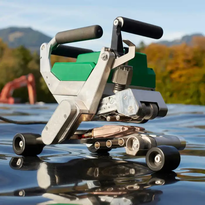 The welder features manual hot air equipment that allows for precise control over welding speed and pressure.