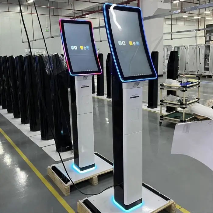 The self-order machine features a 23.6'' LED screen, with an optional 32'' variant available.