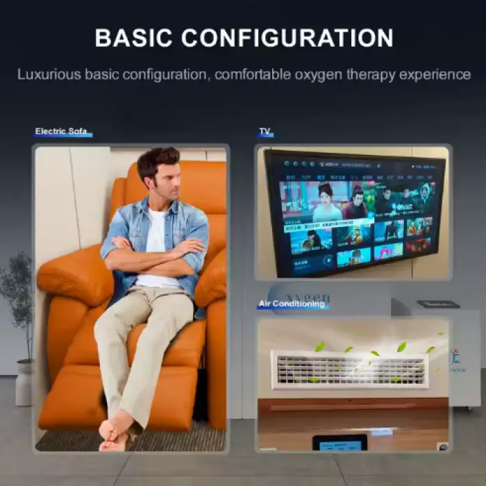 Typical applications include post-injury and post-surgery rehabilitation support, sports recovery, adjunctive treatment in certain medical conditions, and wellness/relaxation sessions in oxygen bars. It should be used as part of an overall care plan under medical advice.
