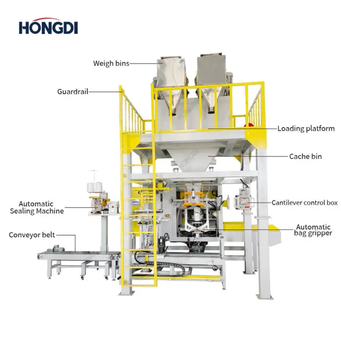 The machine is designed to handle bag weights from 25kg to 50kg.