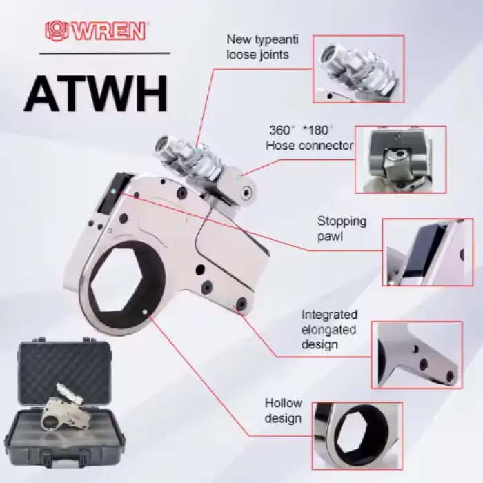 The 2ATWH Hydraulic Tool has a maximum torque output ranging from 223 to 2321 Nm.