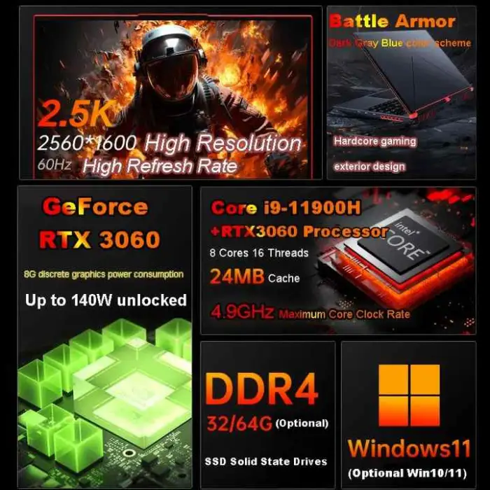 The laptop comes with the NVIDIA RTX3060 6G graphics card, providing excellent performance for gaming and graphics-intensive tasks.