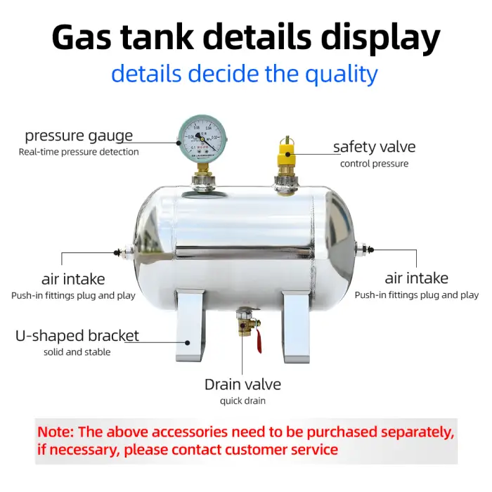 The tank is ideal for use in industrial air compressors, air suspension systems in vehicles, pneumatic tools and equipment, as well as in manufacturing and construction industries.
