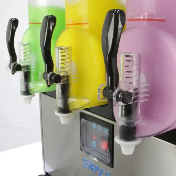 The SC-3 utilizes powerful motors and built-in agitators to continuously stir the mixture, preventing ice from clumping and ensuring a smooth serving.