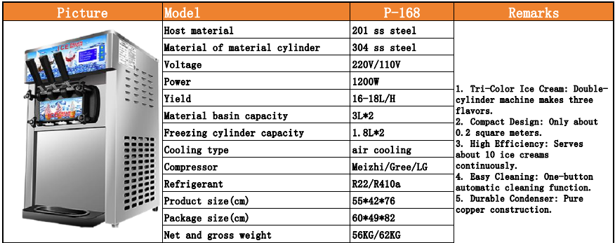 The 3 Flavor Ice Cream Machine - Model P-168 operates on standard household electricity (110-120V) and does not require any special power setup.