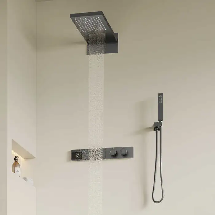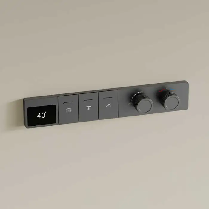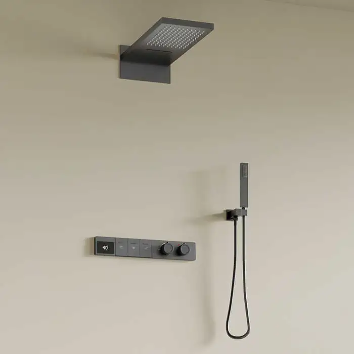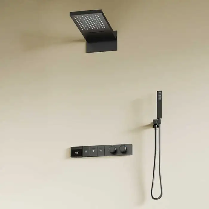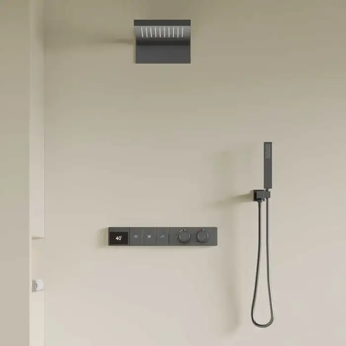 The smart thermostatic control allows for precise temperature regulation, ensuring a comfortable shower experience.
